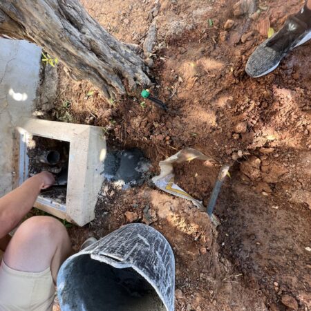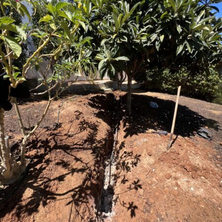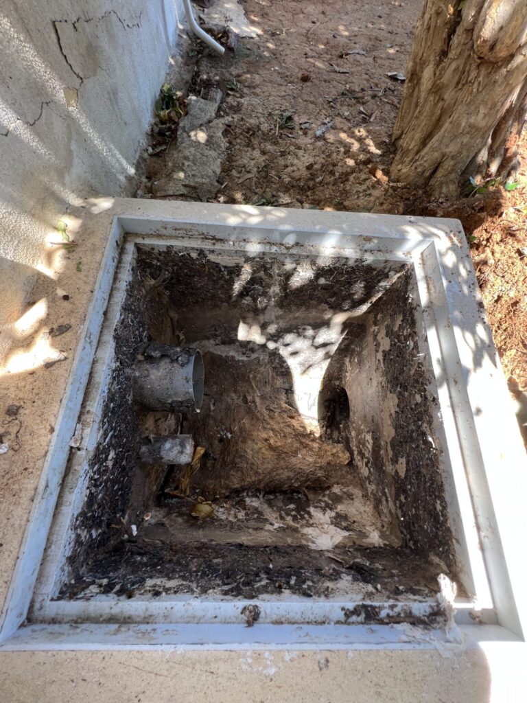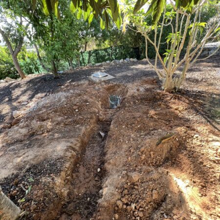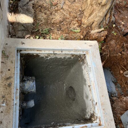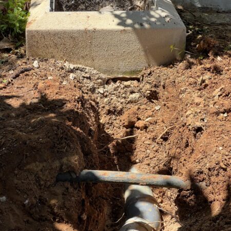 The drainpipe had an unusual bend, causing water to flow improperly and resulting in frequent blockages. We excavated the pipe and replaced it with a new one. We also waterproofed the drain box and, finally, sealed everything back up.